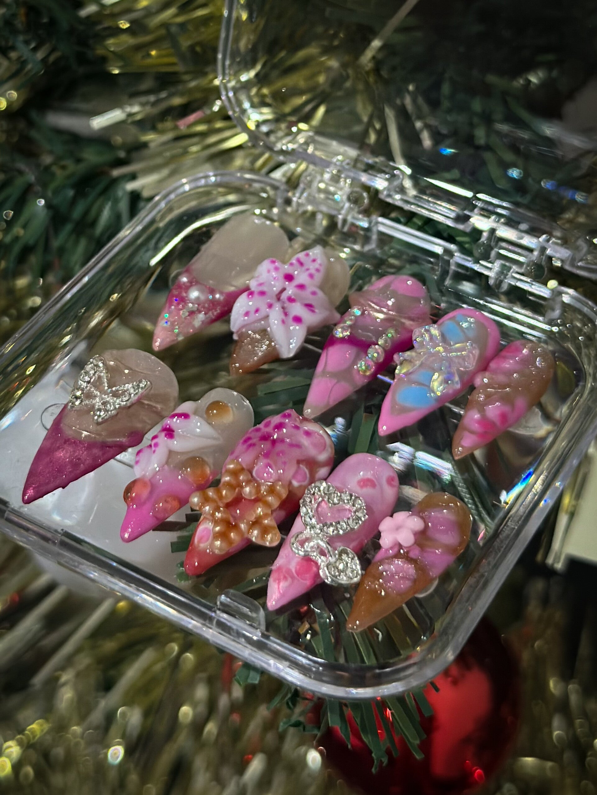 This set is an explosion of color and variety, utilizing the "charms on everything" style popular in Japanese and Korean nail art. Best for easter, conserts or festive season.