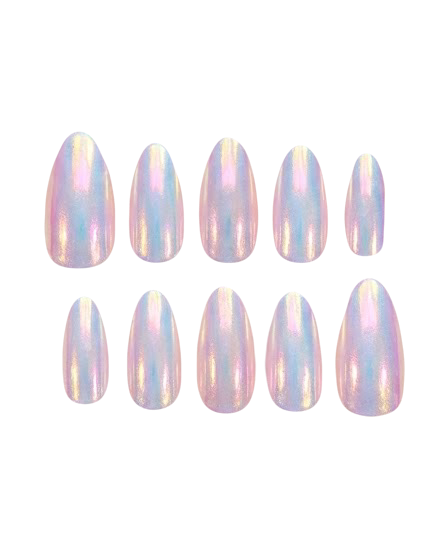 A soft iridescent dream inspired by the northern lights.This set shifts beautifully under different lighting, giving a subtle rainbow glow on a milky base. Minimal yet enchanting — made for everyday elegance with a magical twist.